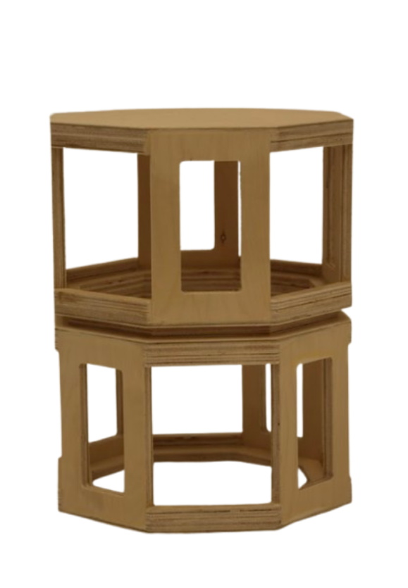 This octagonal piece of furniture serves as a stool and a side table. With the idea that the top half seems as if it’s “floating” on the bottle half, the design encapsulates a symmetric design with versatile useability.
